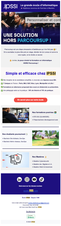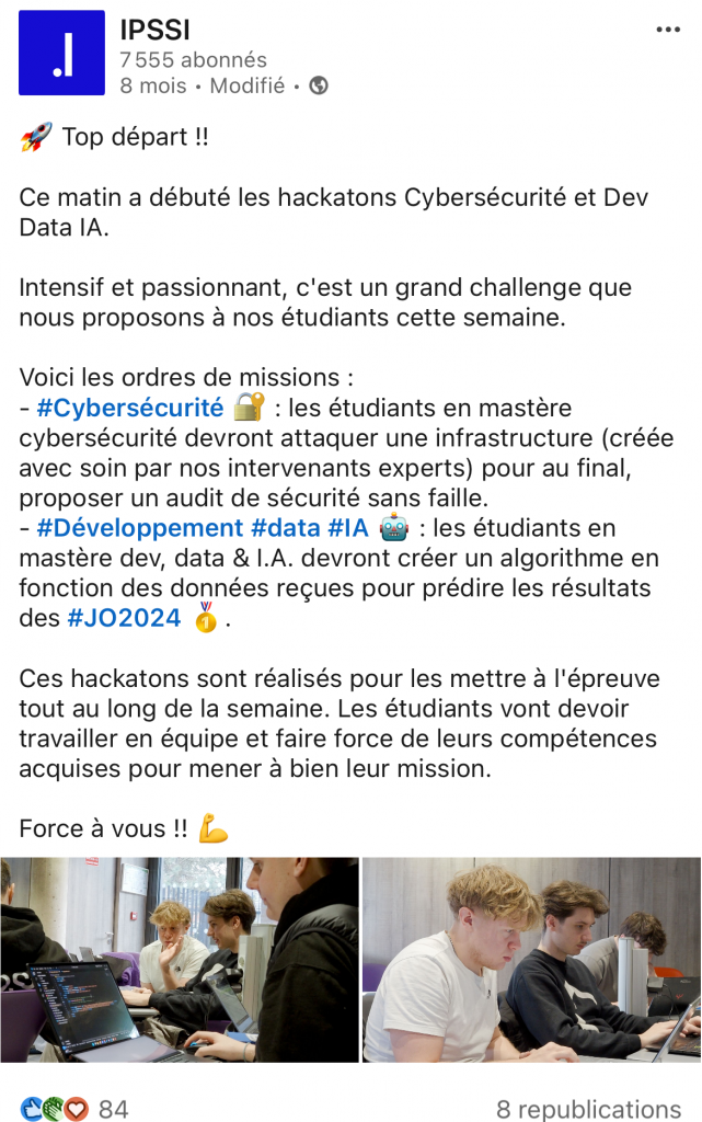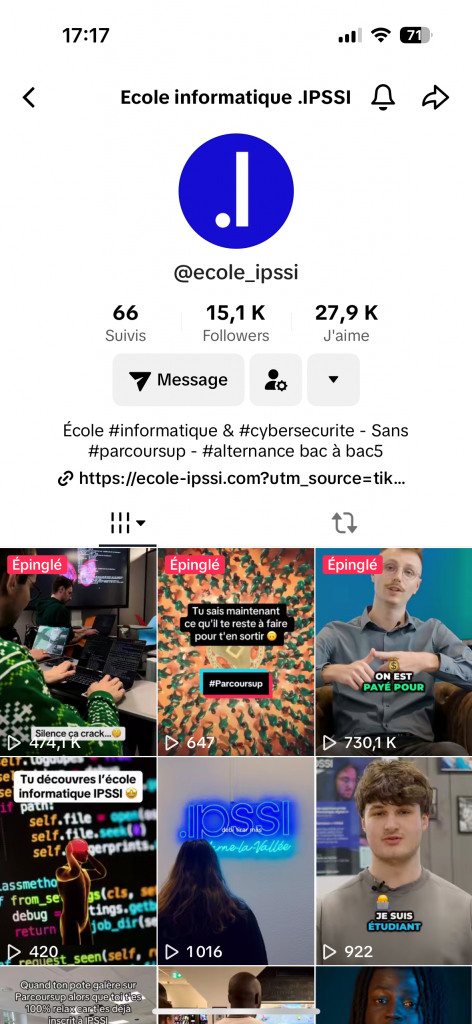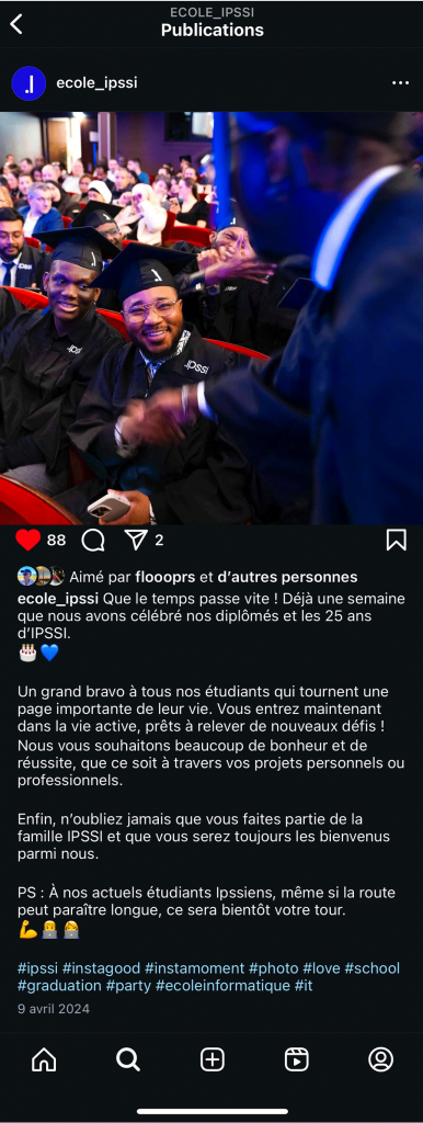 IPSSI couvre de nombreux réseaux sociaux : LinkedIn, Facebook, Instagram, Youtube, Tiktok, Twitter. Chaque réseau social a ses différentes cibles et donc différents sujets et tons employés.